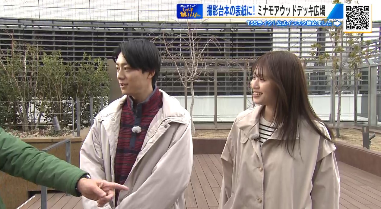 未来電車・棚さんぽコラボ、最初の撮影地は去年3月に開業した広島駅ビルの7階、ウッドデッキ広場です。