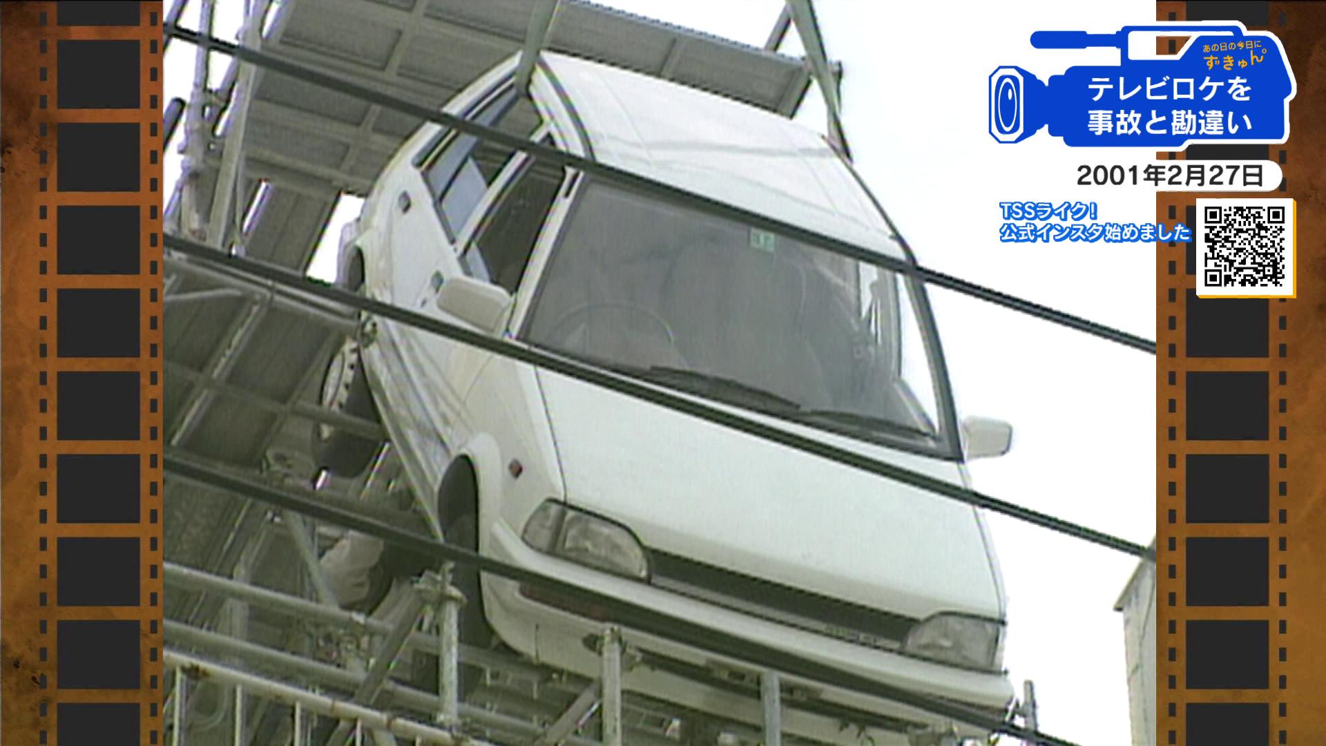 今から25年前の2001年2月27日、広島市内の立体駐車場でテレビ番組の撮影のために車をクレーン車で吊り下げているのを、付近の人が事故と勘違いして消防に通報し、周辺は一時騒然となりました。