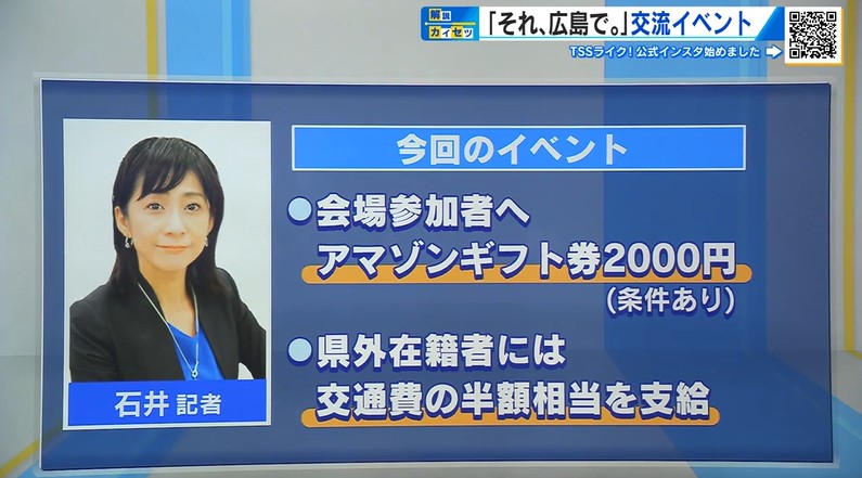 さて、参加者からは、前向きな言葉が、大勢を占めていた、ようですが、取材した石井記者によりますと、今回のイベント参加者にはアマゾンギフト券2000円がプレゼントされ、県外在籍の人には交通費も半額相当を支給されたということです。