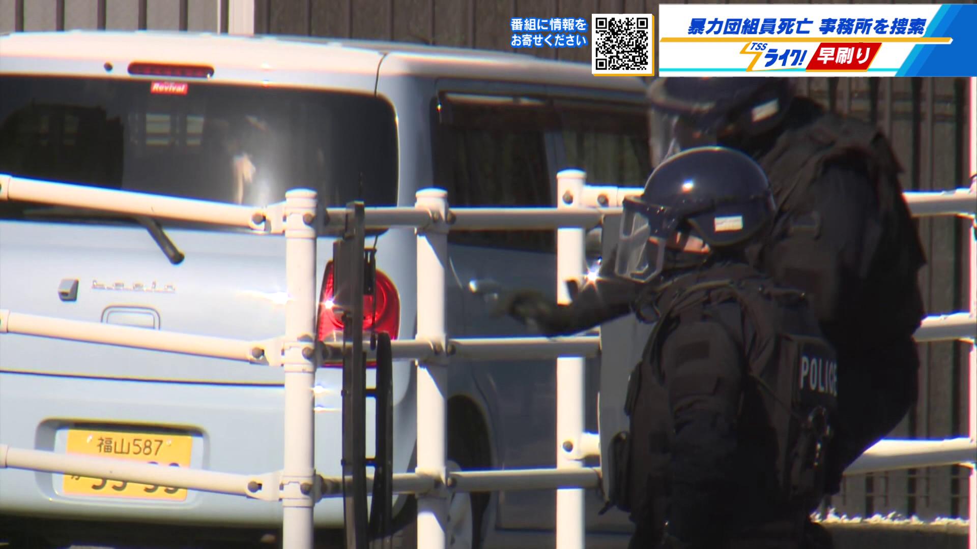 警察は、福山市にある指定暴力団・浅野組傘下の中岡組事務所に家宅捜索に入りました。