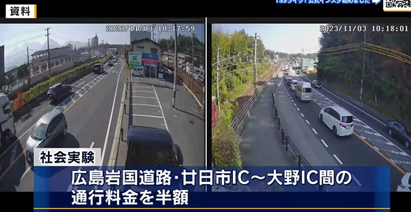去年11月には、広島岩国道路の廿日市インターから大野インターの間の通行料金を半額にするこれまでの試みに加え、国道2号の信号機で青信号のタイミングを調整したり、AIを活用した混雑予測の情報発信も追加しました。