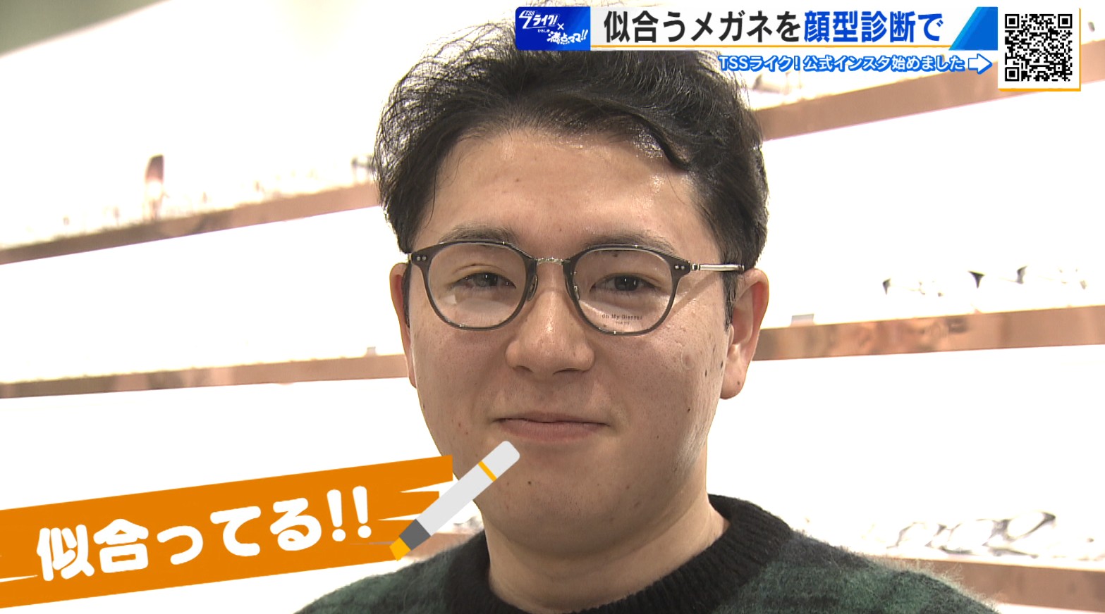 「どうでしょうか?ああ、やはりですね、皆さん(視聴者)も今見て薄々感じてらっしゃると思いますけども、トレンドだからといって誰にでもぴったりはまるかというと、実はそうではないというところなんですが。ちょっとですね、永田さん。私も理想の1本をちょっとぜひ探していただいて、あなたにぴったりのメガネを1本見つけますというような、そういったことというのはしていただけるんですか?」