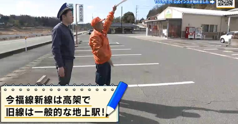「はい、ここはですね、今福線の岩見今福駅の予定地になっていました。この駐車場と、この道路が全部予定地」