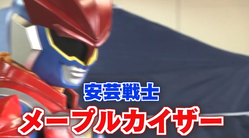 広島のご当地ヒーロー「安芸戦士メープルカイザー」。