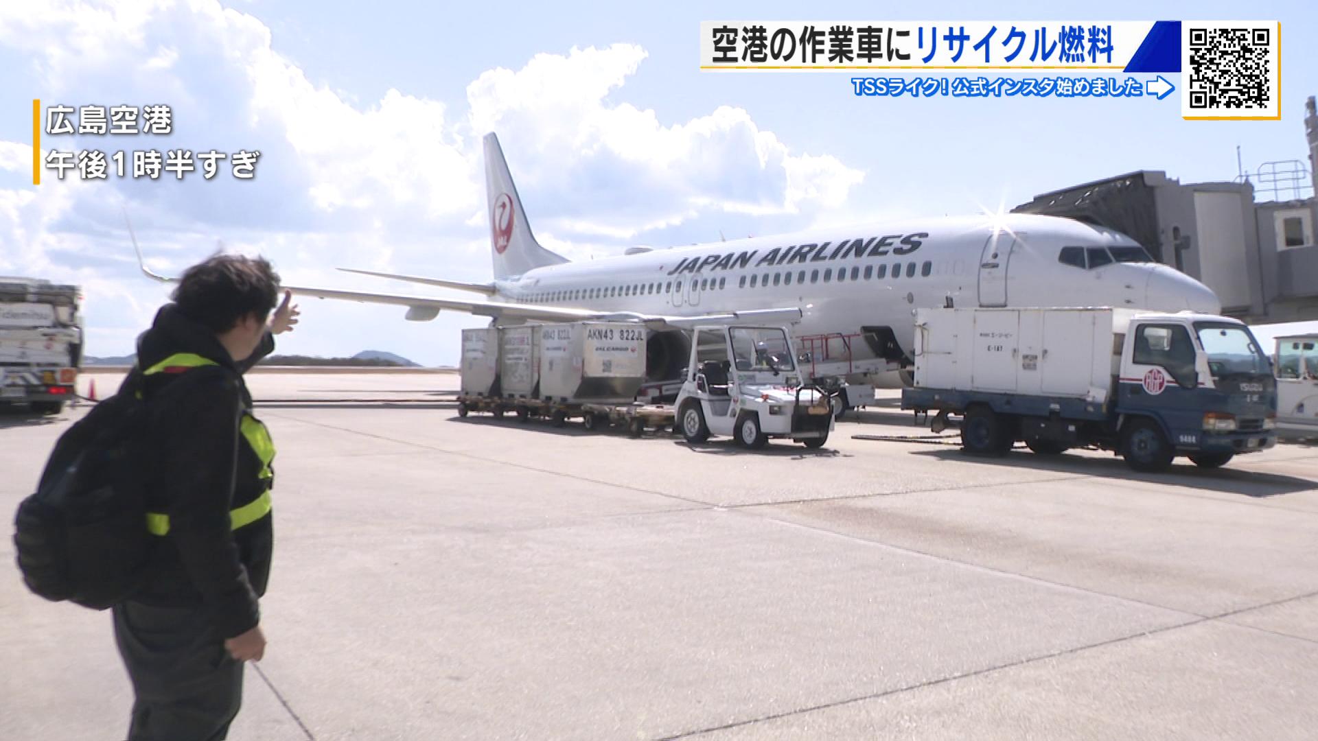 広島の空の玄関口で作業する日本航空の車両に、使用済みの食用油をリサイクルした燃料が新たに導入されました。
