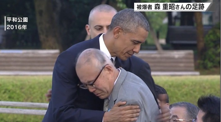 演説後、歩みより抱き寄せたのが亡くなった森重昭さんでした。
