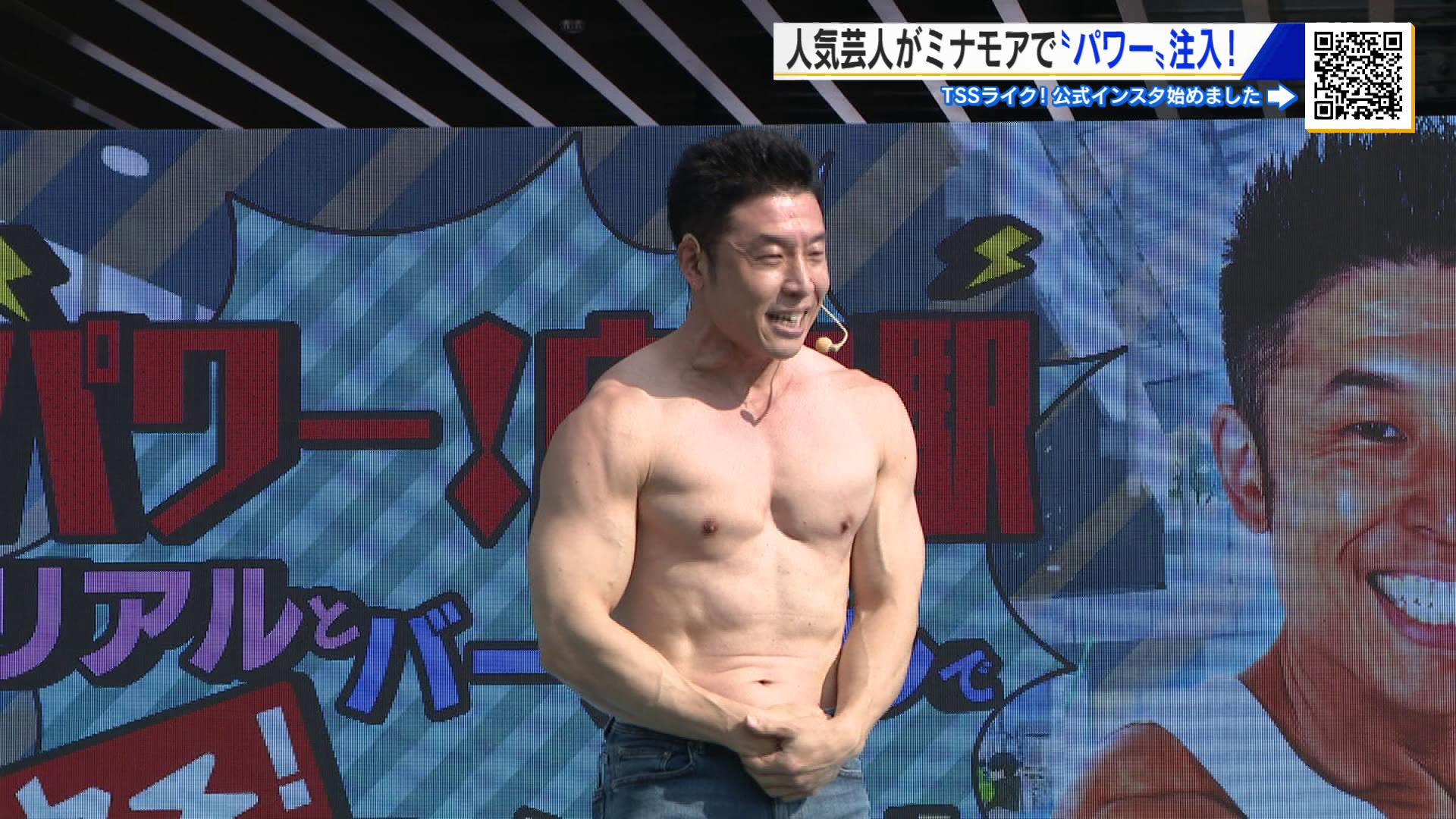 人気芸人「なかやまきんに君」がミナモアでパワー注入! 筋肉ルーレットも披露 広島