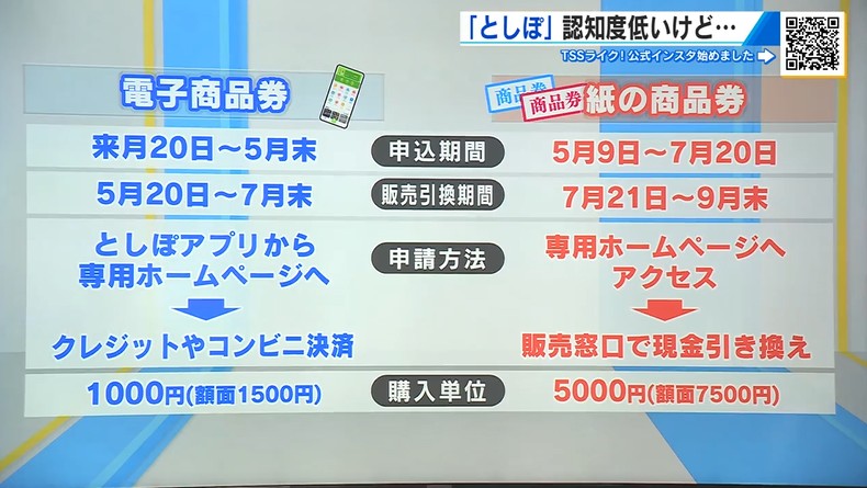 申し込み方法も「電子」はクレジット決済などスマートフォンで完結できますが、「紙」は、申し込みをした後、スーパーや郵便局など販売窓口で現金と交換する仕組みです。