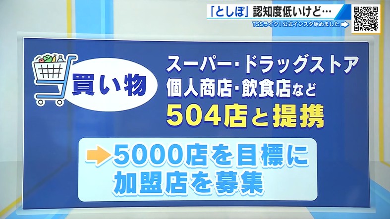 買い物できる場所としては、大手スーパーやドラッグストアを始め、個人商店や飲食店など504店と連携しています。