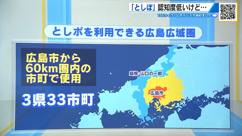 使える地域も紙の商品券は広島市内だけなのに対し、このアプリは広島市から60キロ圏内の3県33市町で利用できます。