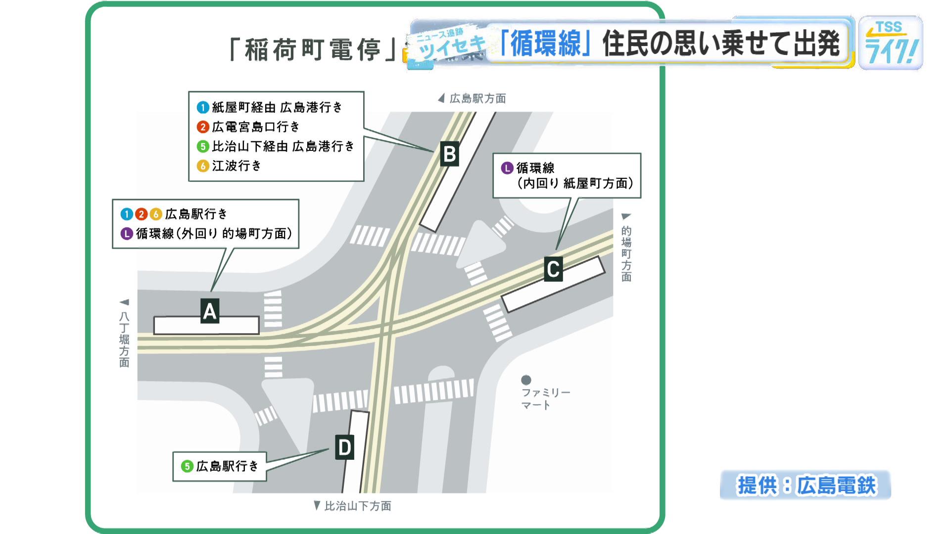 一方、稲荷町交差点は各方面への”分岐点”でもありますが、広島駅には向わない「循環線」にとって気になるのが、乗り換えです。