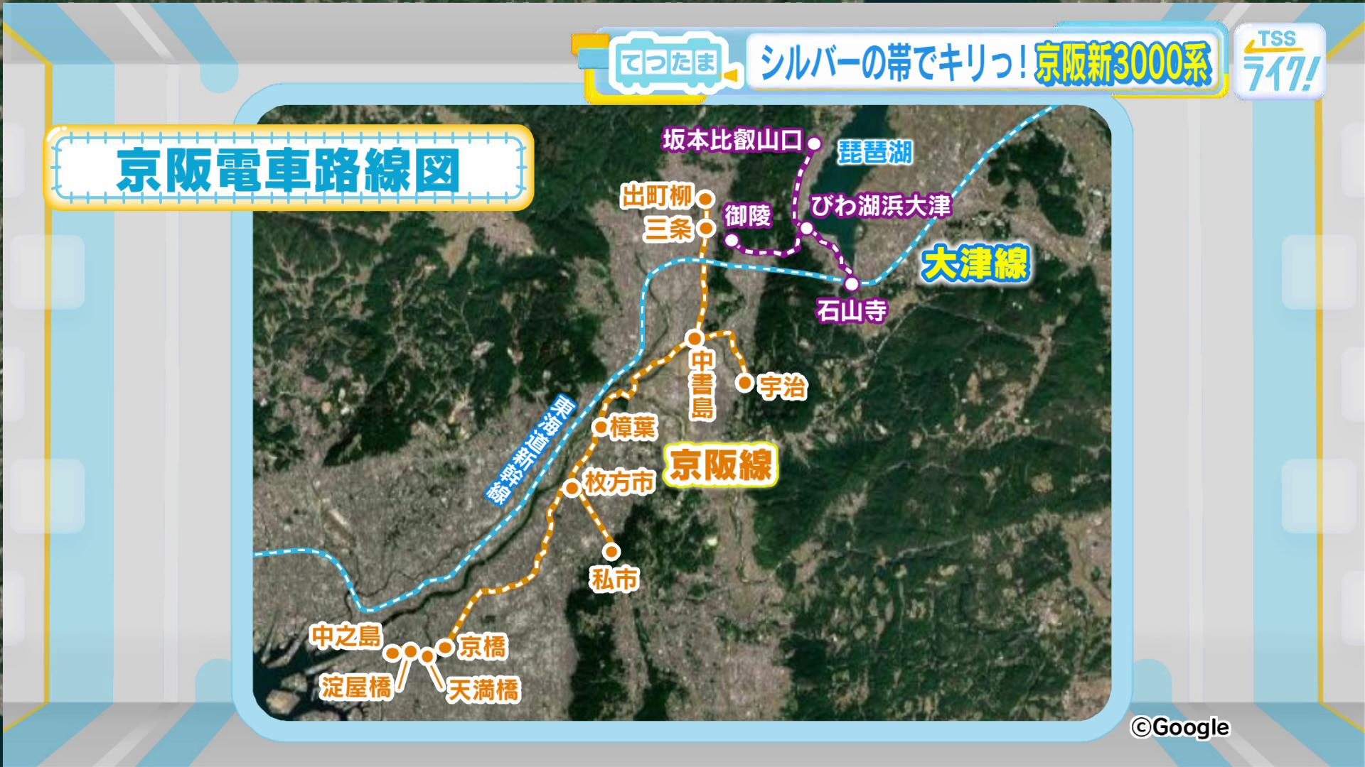 京阪電車は淀川の南側を通り、大阪のビジネス街や京都の観光エリアを結ぶ京阪線と、京都と滋賀を結ぶ大津線。大きく分けてこの2つの系統で構成されています。
