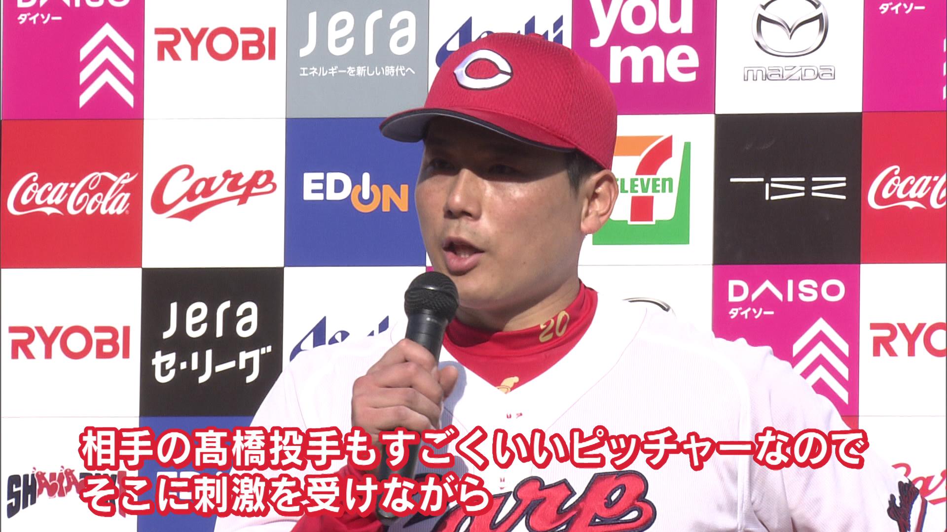 この日、プロ初先発の栗林が見事完封勝利を達成。