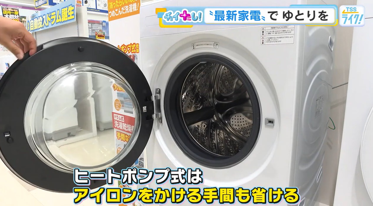 『時短』につながる家電が多く並ぶ売り場で担当者がおススメするドラム式洗濯乾燥機。