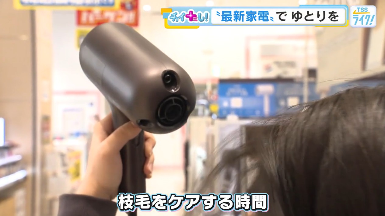 A:そうですね、ドライヤーにしてはいいお値段になります。従来のドライヤーは熱で乾かす、熱い風を送ることで髪を乾かすが、お値段する機種は低温でかつ風量をかなり強めに出す。枝毛をケアする時間、また染め直さないといけないとならないようにこちらは色持ち良くなるのでコスト削減と時短になると思う。