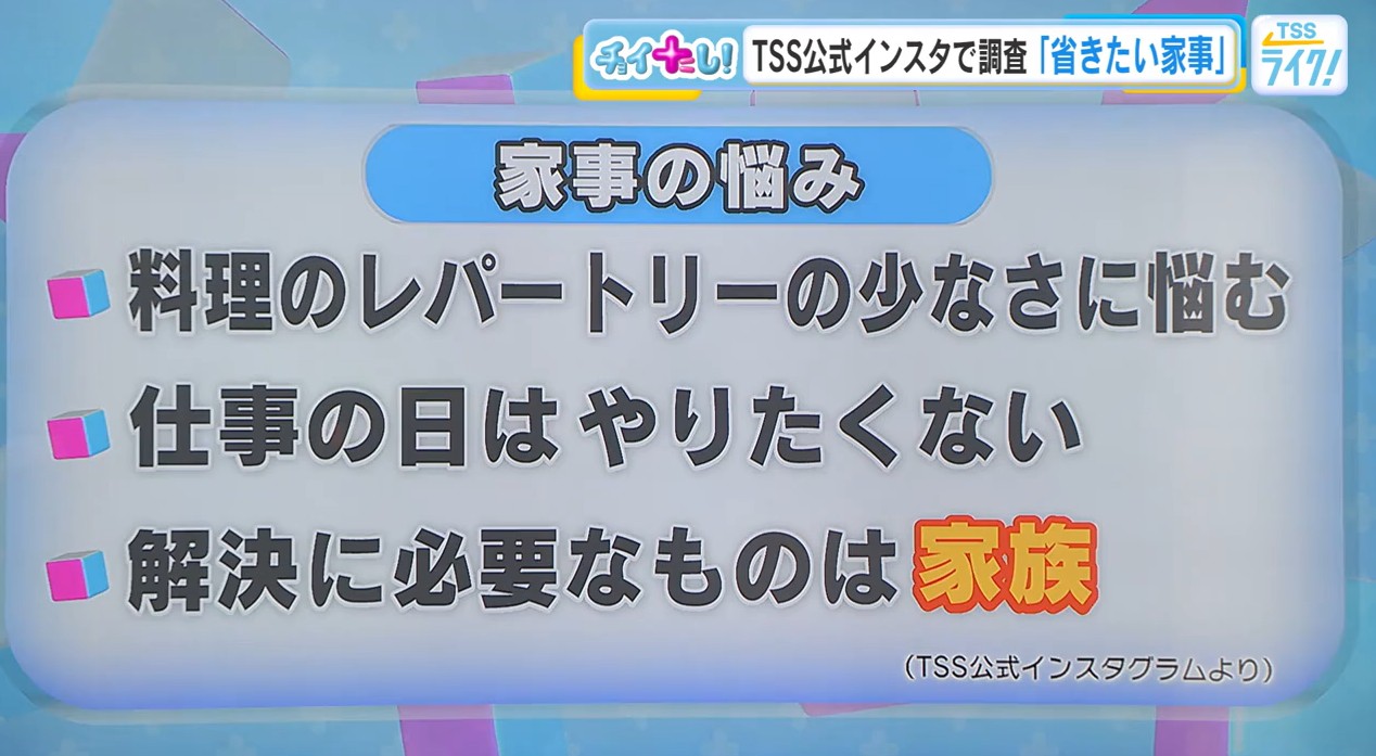 買い物を代わりにやってほしい。なるほど、それもあるんですね。いろいろ各々これを短縮したいというのは違うと思いますが、TSSの公式インスタグラムでもみなさんにどんな時間を省きたいか聞いてみました。