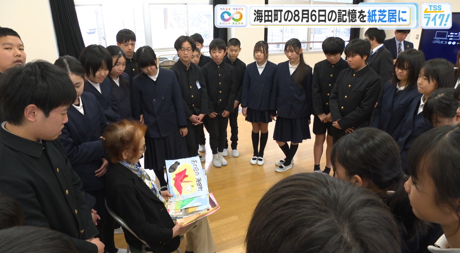 「80年前の海田町の様子を描いた紙芝居についてです。私たちは80年前のあの日海田町の状況はどうだったのか、知っておくべきだと思います。私たちに話してくださった思いを、この海田町でも伝えていくべきだと思います」