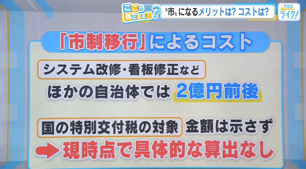 過去に市制移行した自治体では、2億円前後の経費がかかったということです。