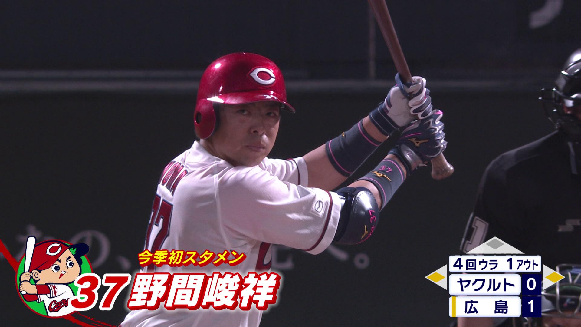 今季初スタメンの野間が起用に応えるバッティングで、貴重な追加点を叩き出します。