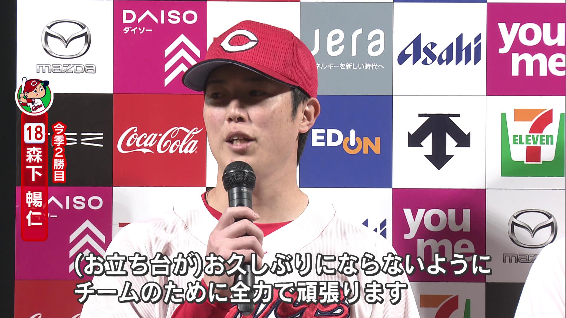 カープ森下投手が力投!首位ヤクルトを撃破 ベテラン秋山選手・野間選手がお立ち台に「お久しぶりです」