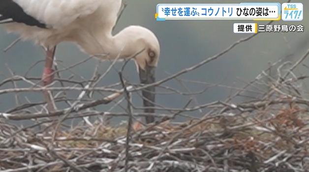 世羅町でコウノトリのふ化が確認されるのは4年連続で、巣を観察していた団体がヒナのくちばしらしきものの撮影に成功したということです。