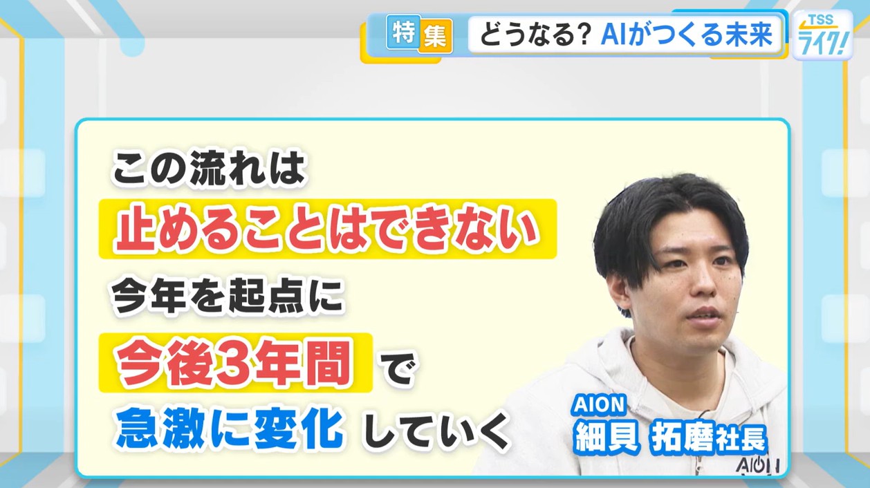 「仕事によるとは言うんですが、音楽や画像も(AIが)作ってくれる時代になっているので、近いうち2・3年後くらいにはほとんど仕事を取られてしまうと思っています」