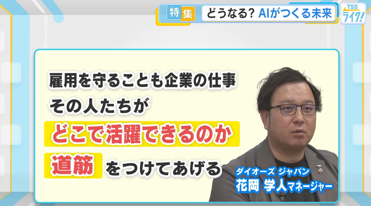AIに仕事を奪われるのではないかという、この問題、危機意識というところですが、雇用を守ることも企業の仕事ですので、どこで活躍できるのか道筋をつけていく、こういったところも企業の仕事だというふうに話していました。
