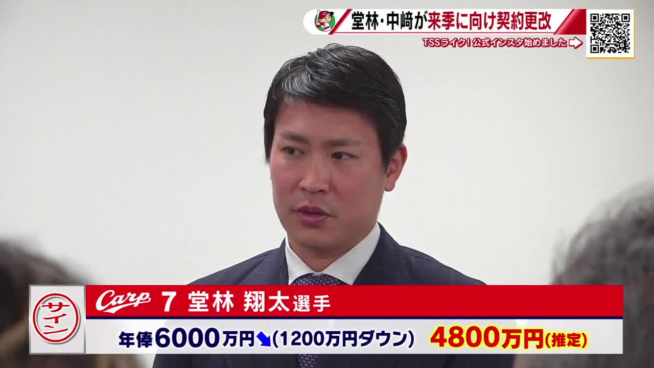 カープ2人の「翔太」契約更改 堂林1200万円減の4800万円 中崎1000万円アップの6200万円
