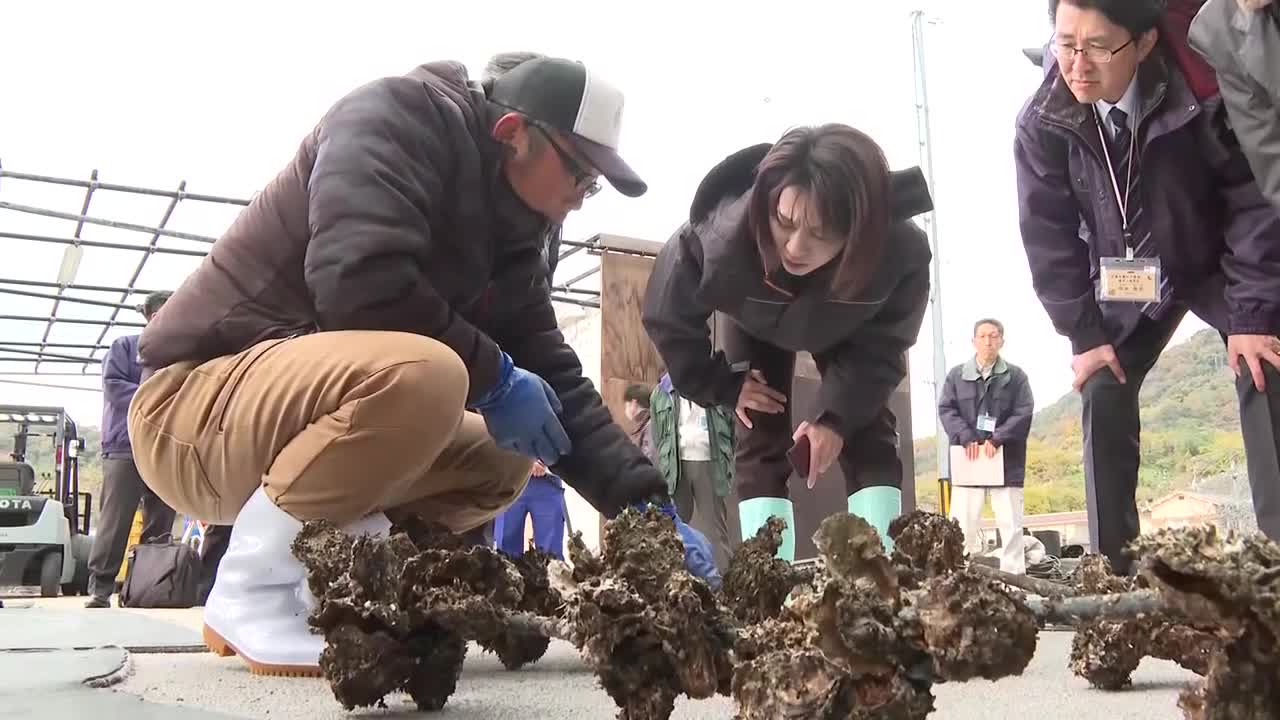 養殖カキ大量死 広島県の横田美香知事が生産現場視察「経営安定に向けしっかりと対策打つ」江田島市・呉市