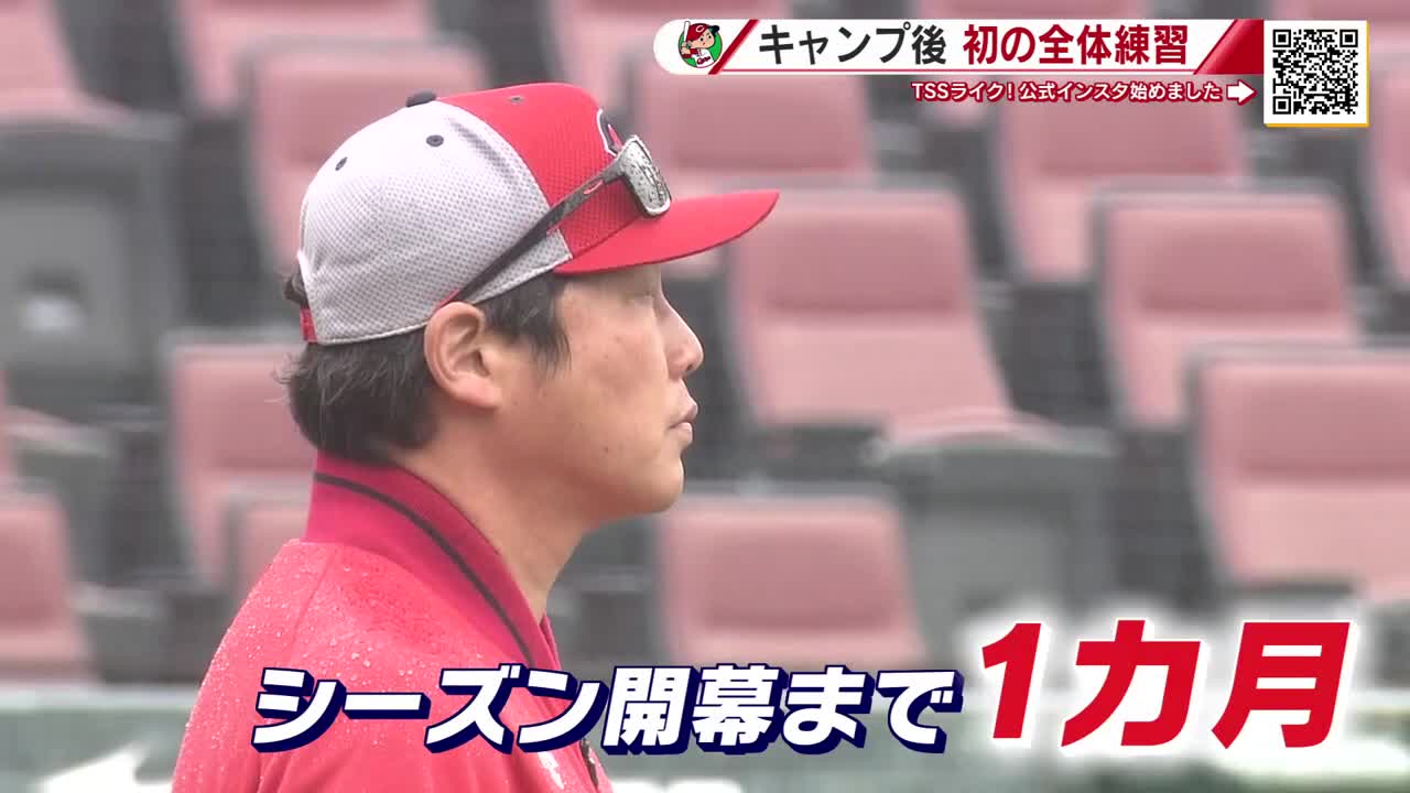 【カープ】キャンプ終了後、初の全体練習 塹江敦哉投手、育成ドラ2岸本大希選手が1軍昇格