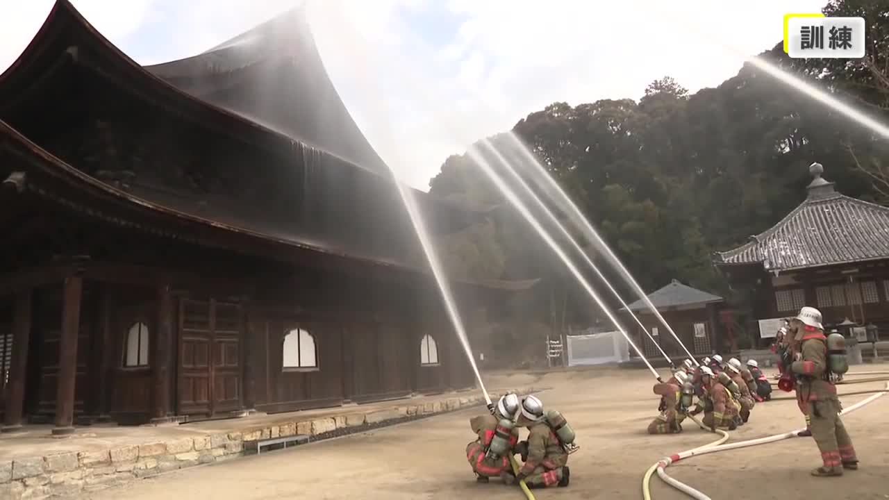 国宝「不動院」で消防訓練 文化財防火デー前に