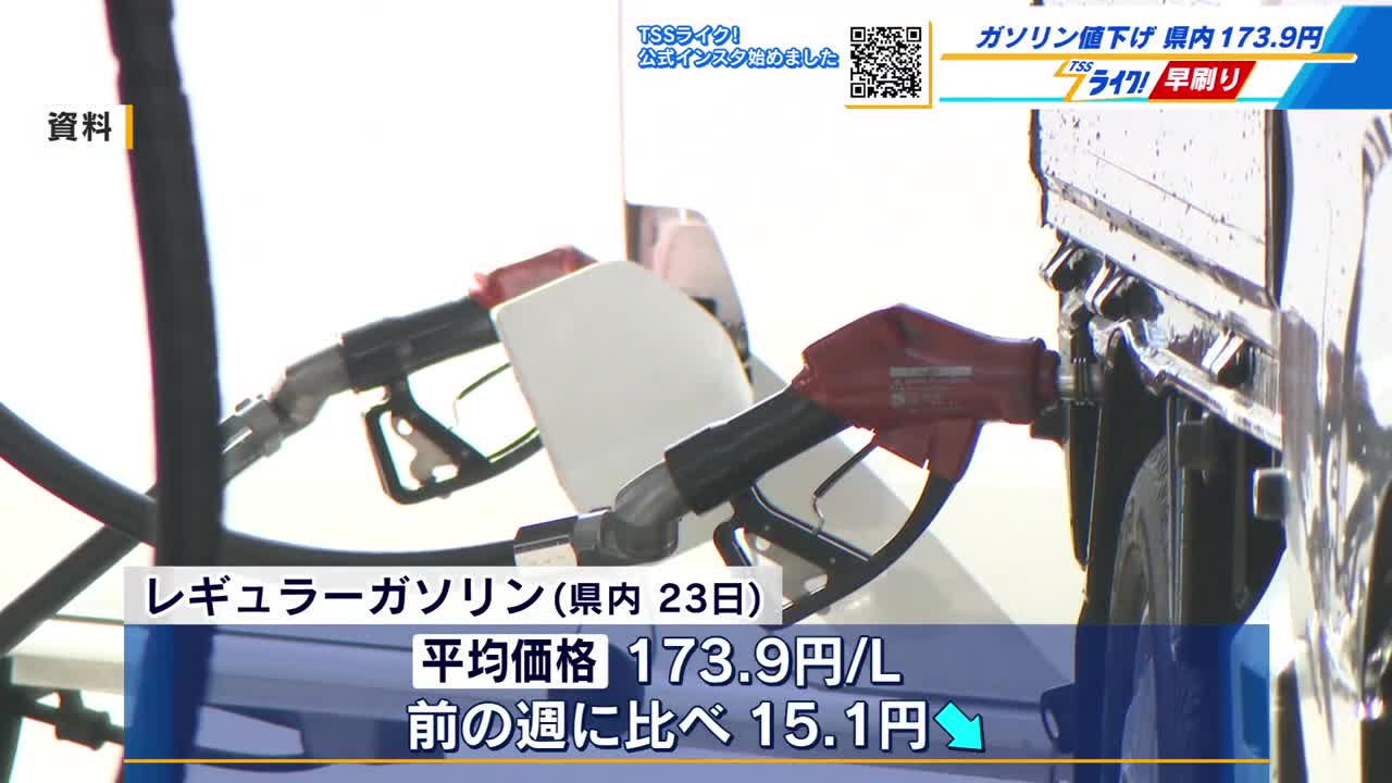 広島県内レギュラーガソリン 1リットル173.9円に 9週間ぶり値下げ 来週は170円に近づく見通し