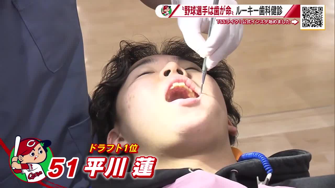 「野球選手は歯が命!」カープ新人たちが歯科健診 噛む力が一番強かったのは勝田選手 成人男性の約2倍!