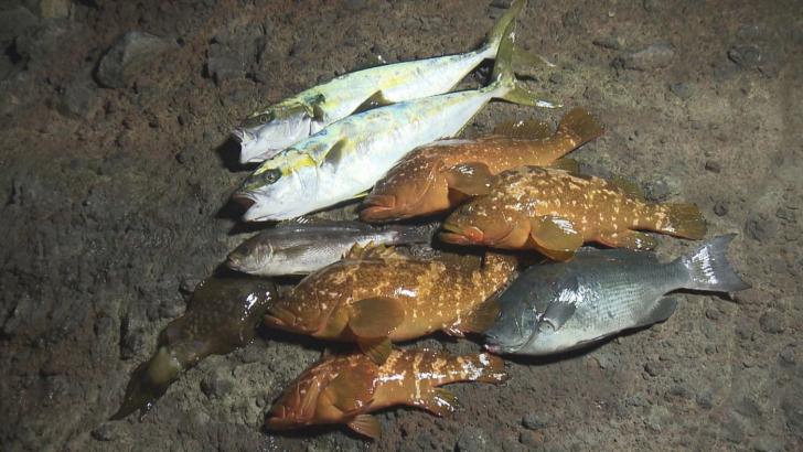 ヒラマサ2匹、アコウ4匹グレ、他