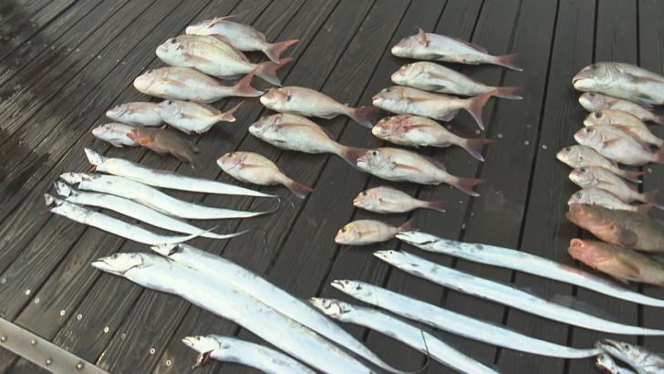 この日はタイラバ組とテンヤ組に分かれての釣り。波風強く、釣り人の腕が試される厳しいコンディションとなります。アタリは小さく、掛けてからも慎重なやりとりが続きますが、順調に釣果を伸ばしていきます。さらに後半は、ここ数年調子を落としていたタチウオ釣りへ。昨年秋から好調となり、この日も活性は上々。わずか2時間ほどで全員が本命を手にし、迫力満点のドラゴンサイズも登場します。冬ならではの価値ある1匹と、復調を感じさせるタチウオ。船上賑わう瀬戸内のオフショア、お楽しみに!