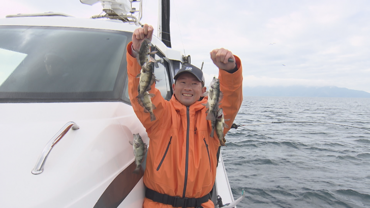 午前5時半に広島県呉市倉橋町の重生港を出船して向かったのは、山口県周防大島の沖合。近年メバル釣りは苦戦傾向にありましたが、今年は好調。この日は風も波も穏やかという絶好のコンディションに恵まれ、なんと1投目から幸先よくヒットします。メバルサビキの最大の魅力は、次々と魚が針にかかる「連掛け」。1匹目が掛かると、その魚が吐き出すエサに他のメバルが誘われ、2匹、3匹と食いついてくる、そしてそのメバルをいかに掛けていくか、非常にゲーム性の高い釣りです。良型の一匹をじっくりと狙うか、それともどん欲に数を狙って連掛けを楽しむか、釣り人の腕が試される駆け引きも見どころ。今シーズン、数・型共に楽しめるメバルサビキ、お楽しみに!