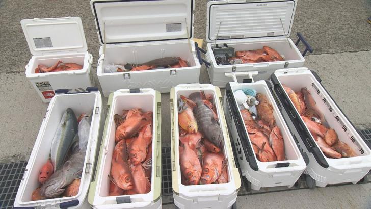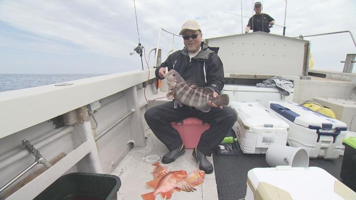 向かったのは山口県萩市の沖合、約45kmの日本海に浮かぶ「見島」。そこから更に北上した所にある「八里ヶ瀬」です。約30kmにも及ぶ巨大な岩礁帯が広がっており、大型回遊魚から多種多彩な底物まで、幅広いターゲットと相まみえることの出来るまさに夢のフィールド。この日は日本海とは思えないほどの穏やかな海面。絶好の釣り日和の中、スロージギングとインチクで根魚を中心に狙います。序盤から絶好調でチカメキントキ、ウッカリカサゴ、アマダイ、マハタなどが姿をみせ、この海域のポテンシャルを目の当たりにします。さらには釣り方を変え、今度は青物のアタリも。上物&底物で五目達成なるか!?魚種、釣り方共にどんな楽しみ方もできる夢の見島沖オフショアゲーム。お楽しみに!