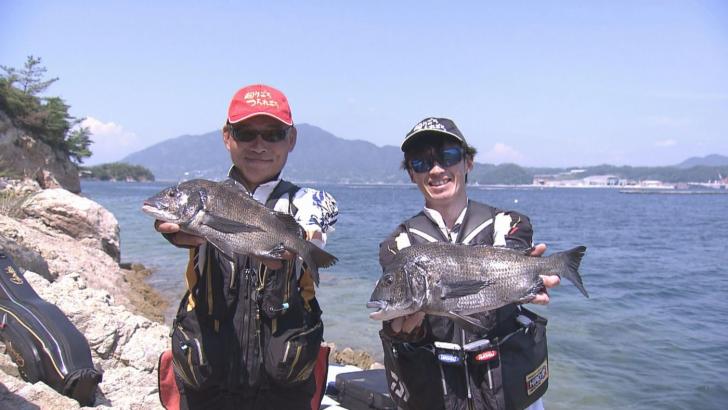 今回の釣り場となるのは広島県、大黒神島の「トウフ」という磯。足下から水深があり、チヌの実績も高い好ポイントです。釣行日となったこの日は、快晴。海は穏やかで釣りやすいものの、灼熱の日差しが釣り人の体力を奪います。短時間で釣果を出したい名手2人。この場所での攻略方法をインタビューしていると、なんと話の途中でいきなりヒット!早々にチヌを釣り上げます。一方もう一人の名手はアタリ無く苦戦。釣り座自体は離れていませんが、潮の流れひとつでここまで違うのかと、難しさを痛感します。果たして、この状況を打破することができるのか。灼熱の瀬戸内チヌ釣り。お楽しみに!