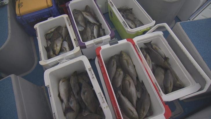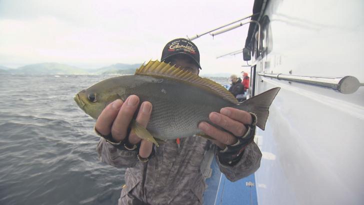 釣り場となったのは山口県周防大島沖。ウマヅラハギは、秋から冬にかけて脂がのり、特に10月頃からが旬。透き通るような白身は淡泊ながら旨みが強く、刺身や煮付け、鍋など幅広く楽しめます。特に今から大きくなってくる肝が絶品で、濃厚なコクはまさに旬ならではの味わい。釣っても小さく繊細なアタリでエサだけを取るのが上手なことからエサ取り名人の異名も。わずかなアタリを逃さず掛けにいく釣りはゲーム性もあり、その難しさや掛けたときの爽快感も人気の理由です。この日は風、波がありアタリを取るのが難しい状況。そんな中でもベテラン釣り師たちはしっかりとウマヅラハギの口にフッキングさせ釣果をあげていきます。途中カワハギやイサキと言った嬉しいゲストの姿も。これから最盛期を迎えるウマヅラハギ。あなたも釣って食べて楽しんでみては?