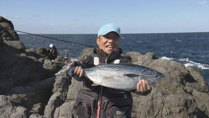 釣り場となるのは山口県萩市の沖合、約45kmに浮かぶ離島「見島」。上物から底物まで魚影が濃く、磯から大物が狙える日本屈指の一級ポイントです。この日のメインターゲットとなるのは最大15kgクラスにもなるコシナガマグロ。そしてメーターオーバーの大型ヒラマサ。釣り方はカゴ釣り。エサとなるオキアミボイルをとにかくたくさん撒くことから始まります。強風と時化で釣りづらいコンディションではありますが、高級魚のスマや60から70cmクラスのヒラマサが姿を表します。しかし狙っているのはメーター級回遊魚。豪快なキャストで何度も仕掛けを投げ込みます。果たしてパワフルなファイトと、あっと驚く大物は姿を現すのでしょうか。お楽しみに!