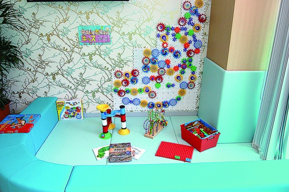 子育て家族にとってうれしいのがキッズコーナー。珍しい海外メーカーのおもちゃが多数そろい、子どもたちも夢中に。目の届く場所で遊ばせている間、親御さんは保障についてしっかりと相談できます。