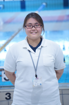 現在、スイミング指導をしている古田さんは、小学校低学年の時にはプールが怖くて全く泳げなかったそうです。小学校3年生になって水泳教室に通ったのがきっかけで、水と親しみ、水泳を楽しめるようになれたと言います。