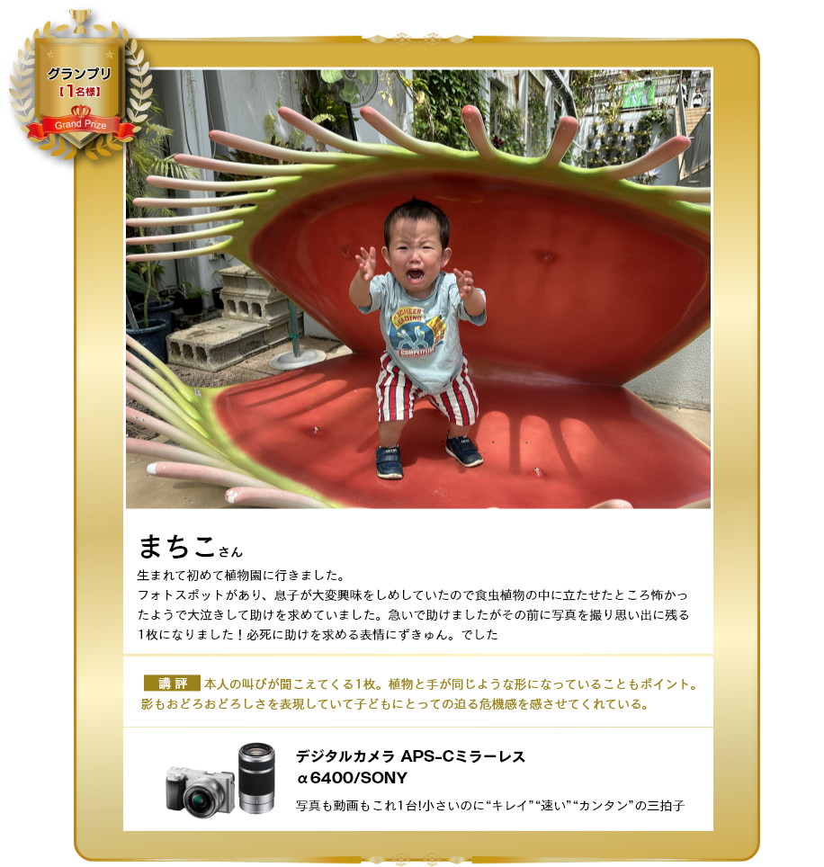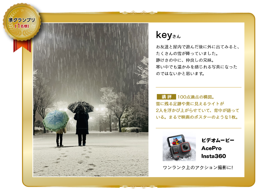今回の選定で笑顔の写真を今回いっぱい見させて頂き元気を貰いました。笑顔はやはり特別な力を持っていると改めて気づかせて貰いました。写真を撮る事で普段感じ無い感情や新しい発見する事などが写真の醍醐味なので応募は終わりましたが引き続き写真を撮り続けて欲しいです。